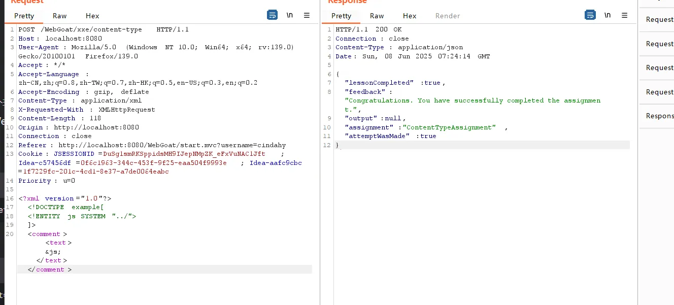 evil.dtd 中定义了一个名为 send 的参数实体,用于执行恶意操作(如窃取数据)。