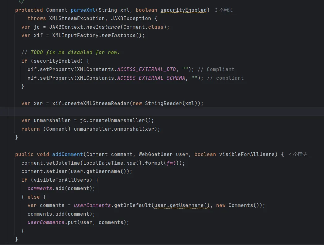 由securityEnabled参数判断是否开启禁用外部 DTD和外部 XML Schema的功能