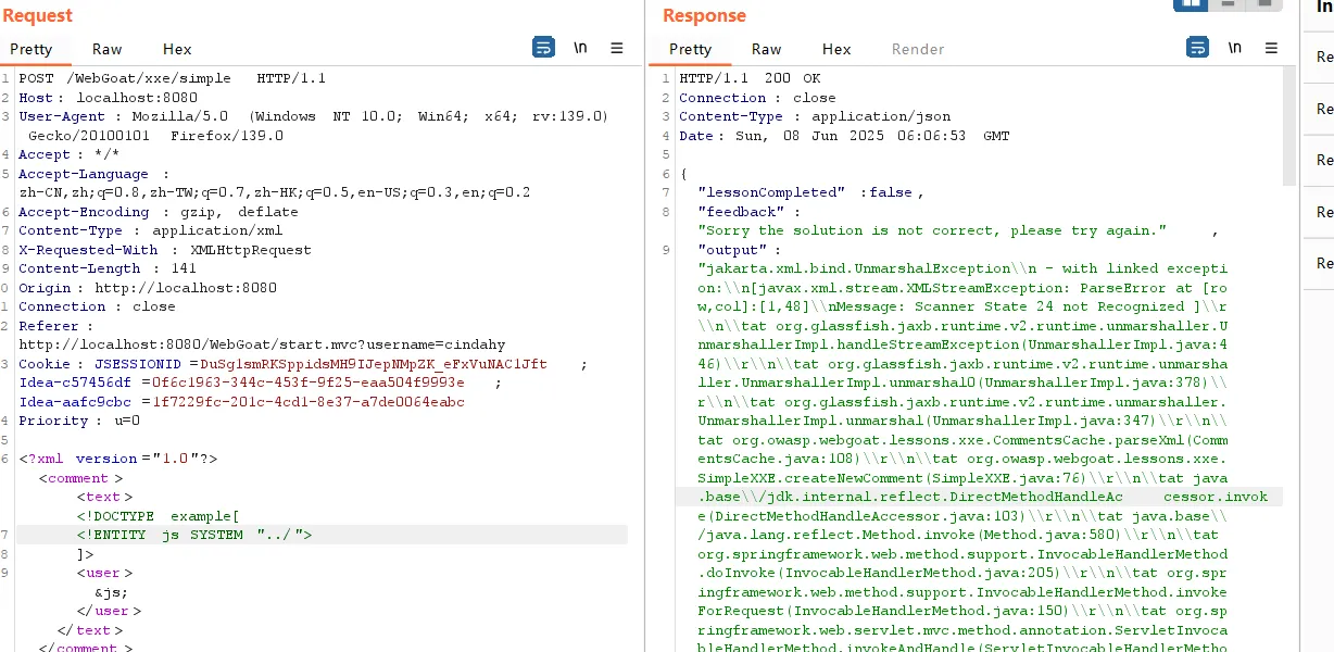 unmarshaller在将xml对象反序列化为java对象的时候,会解析xml,如果xml中有可控传入就会导致xxe注入攻击