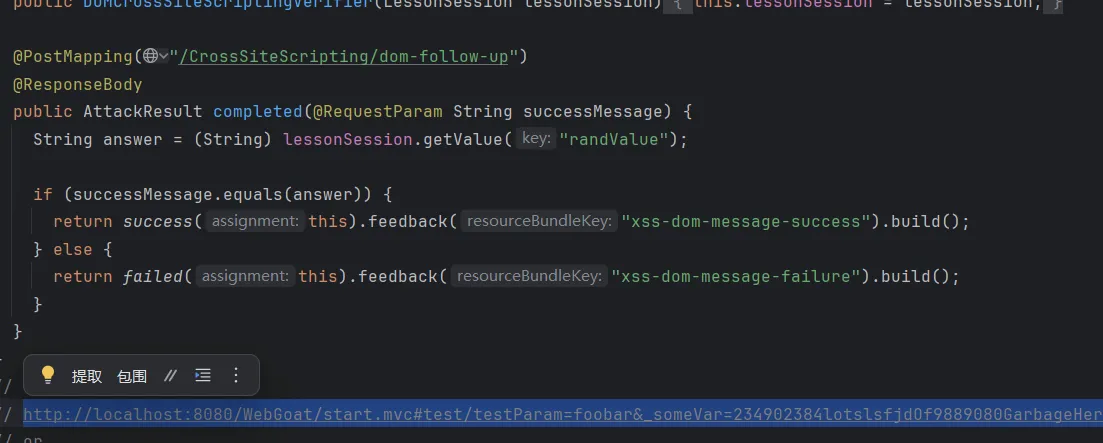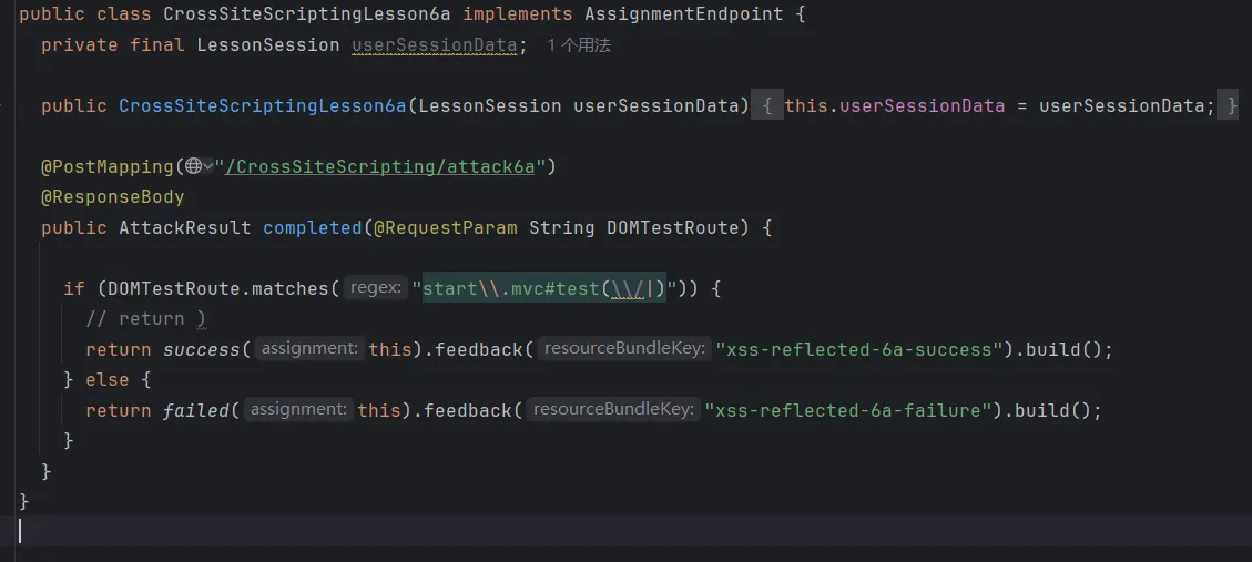 完整的攻击链:URL参数 → testRoute → testHandler → showTestParam → innerHTML