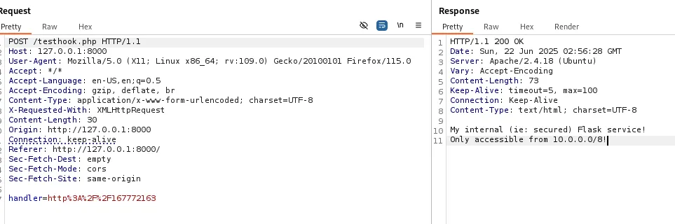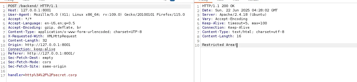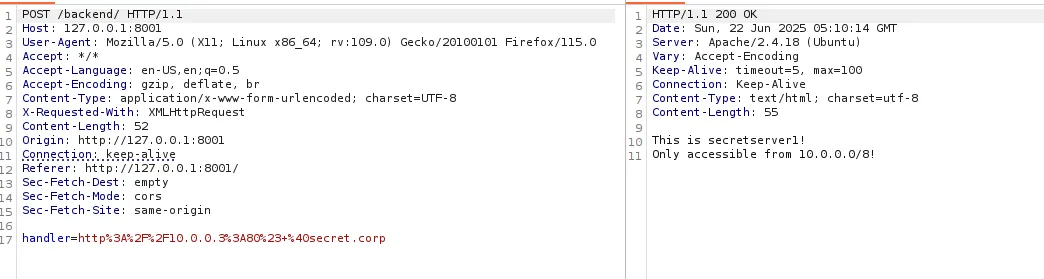 这里感觉有点奇怪,网上用http://google.com# @secret.corp绕过,但是这一返回其实和secret.corp没关系