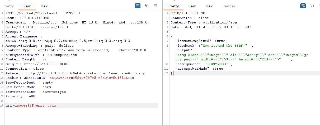 这里点击按钮抓包后会提交一个tom.png的url申请,把tom改成jerry就行了