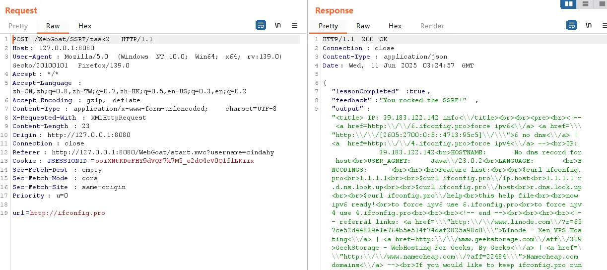 要我们从 http://ifconfig.pro 获取信息,那就尝试把url改成这个