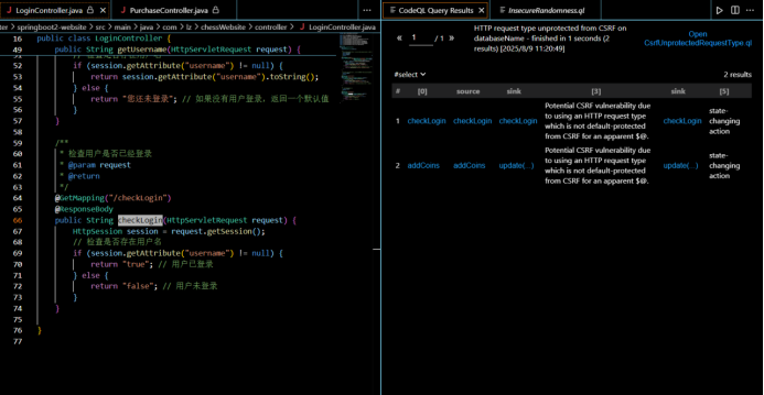 codeql database analyze D:\apache-tomcat-9.0.104\webapps\chessWebsite\chessWebsite-master\springboot2-website\databaseName D:\codeql\ql\java\ql\src\Security\CWE --format=csv --output=result.csv