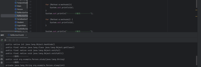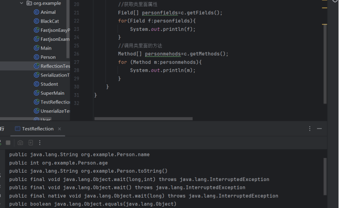 Method[] getMethods() //获取所有的public方法,包括类自身声明的public方法,父类中的public方法、实现的接口方法
