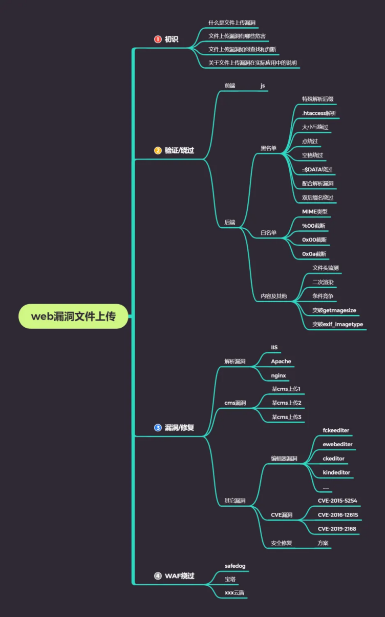 先看中间件,看有没有已经公布的漏洞,找文件上传点,试它的验证模式(黑白名单,后缀名,文件类型(MIME),文件头(png等文件有固定文件头))