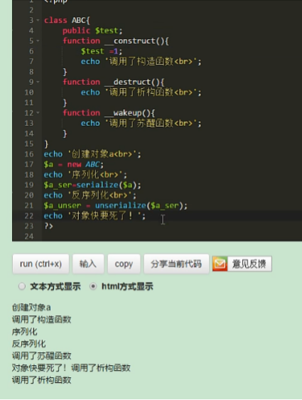 会自动调用destruct魔术方法,由于两个op比较的严格性不同,进行绕过,首先将op=' 2'的类序列化,将序列化后的内容传入str