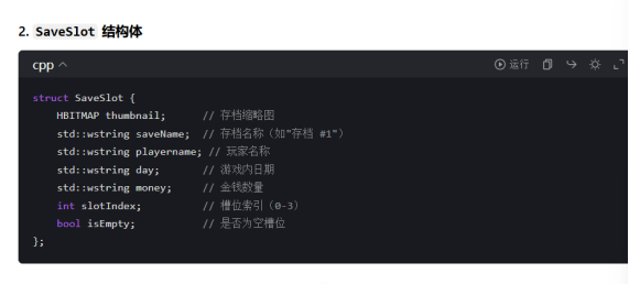 o 关键点:存档时需注意数据顺序与类型匹配(如reinterpret_cast的正确使用),避免读档时出现解析错误。