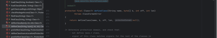 的作用是处理前面传入的字节码,将其处理成真正的Java类,所以可见,真正的核心部分其实是defineClass()