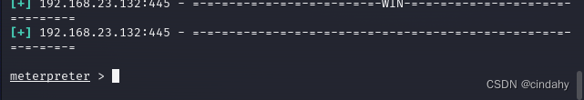 在run之后最后一行会出现meterpreter,表明此过程作用是获取meterpreter,如图。