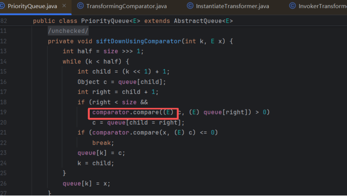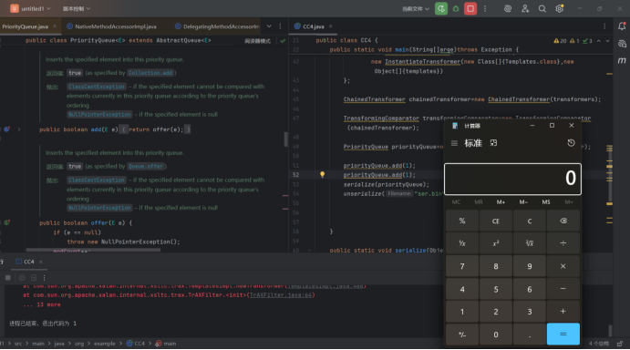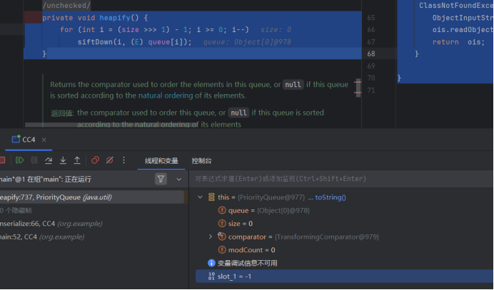 所以这里要先创建一个无害的TransformingComparator,然后在反序列化之前再利用反射将恶意代码注入,就能将恶意代码的触发点从序列化阶段延迟到反序列化阶段。