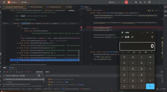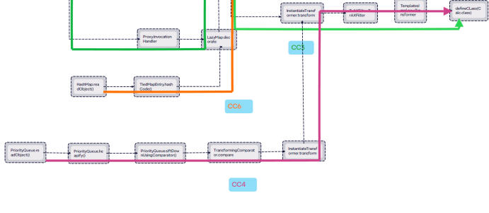 由于InvokerTransformer不能被序列化了,所以我们要new一个InvokerTransformer,再调用它的transform方法。然后通过其他函数的反序列化触发这一过程。