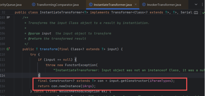 查找transform,然后我们就发现在 InstantiateTransformer的transform中可以实现这一过程。