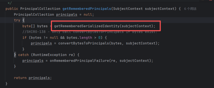 这里找到了AbstractRememberMeManager类中的getRememberedPrincipals