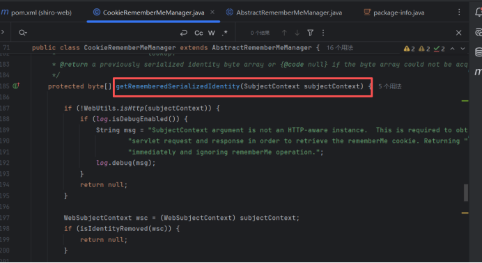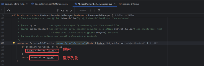 显然这是shrio框架的cookie相关的重要方法。逆向找一下谁调用了它。