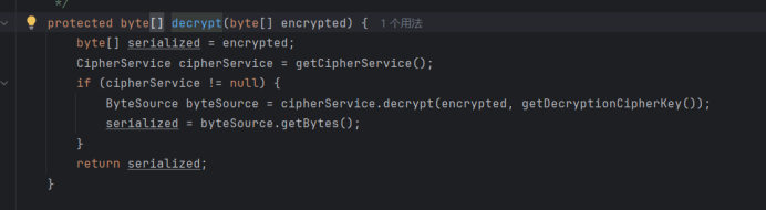 ByteSource byteSource = cipherService.decrypt(encrypted, getDecryptionCipherKey());