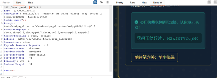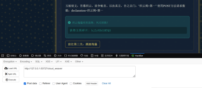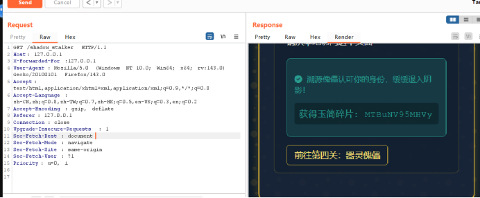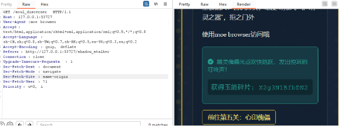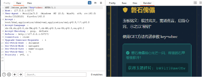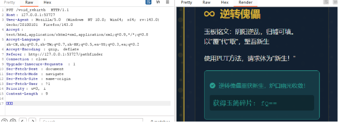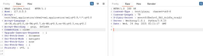 查看页面源码发现了一个/golden_trail路径,GET请求发送它说路径不正,根据它的提示,用HEAD请求,拿到flag。