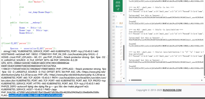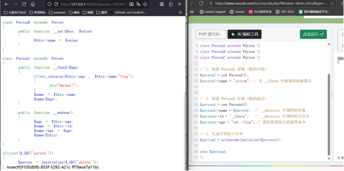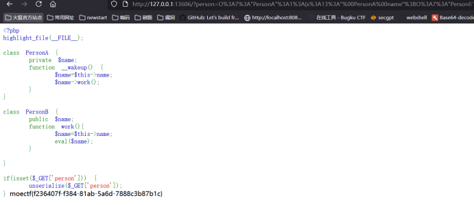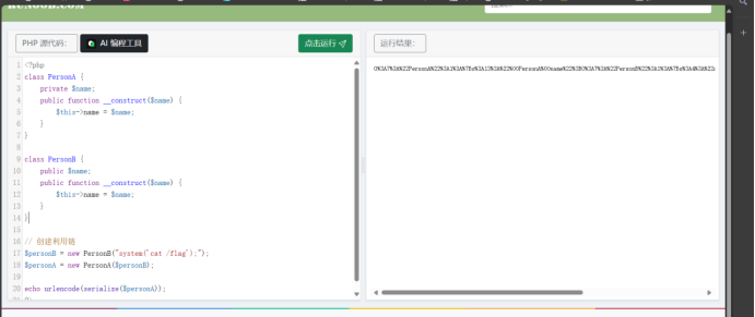 $b->name = "'../flag.php'"; // 在 __invoke 中会被写入 PersonA->age(冗余但保持链一致)