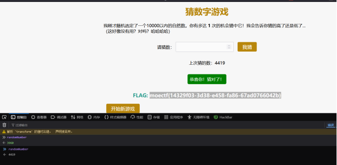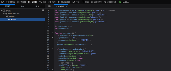 这里看到页面的js文件中随机生成的随机数randomNumber,判断用户输入数字是否等于它,如果等于则从后端传回flag。
