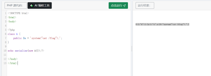 我们可以像这样先对php进行序列化,让其在反序列的时候执行我们需要的恶意代码。