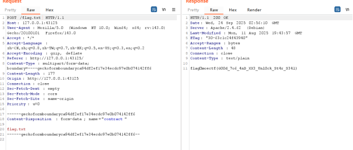 提示flag在flag.txt中,直接抓包访问/flag.txt