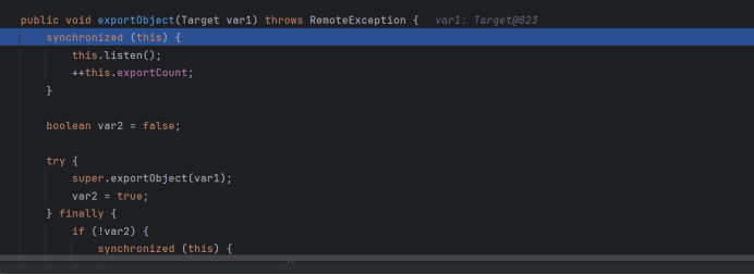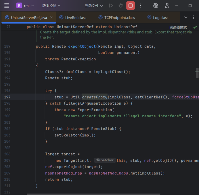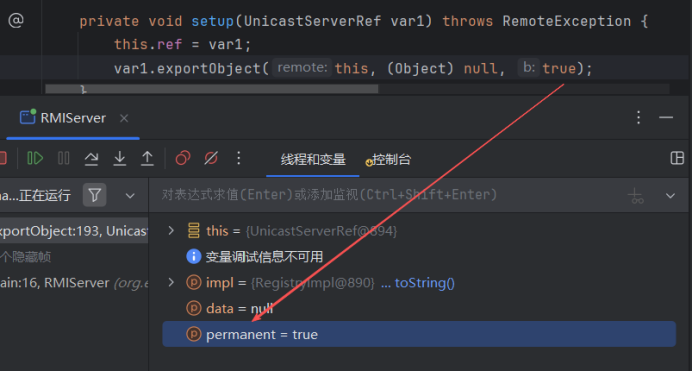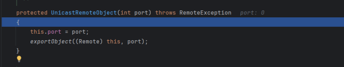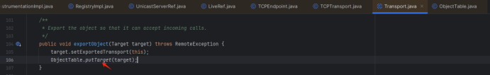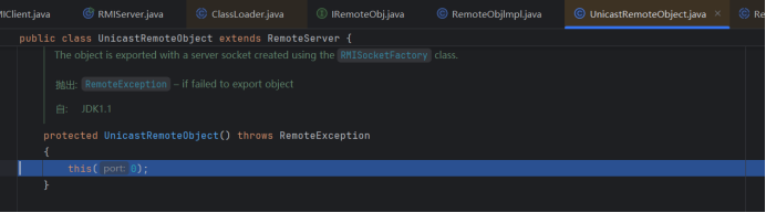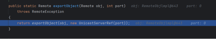 是一个静态函数,它主要是负责将远程服务发布到网络上,它第一个参数this代表我们刚刚创建的RemoteObjlmpl