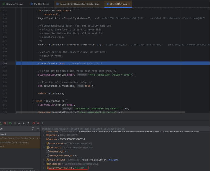 可以看到之后返回了一个HELLO的值,成功反序列化的值