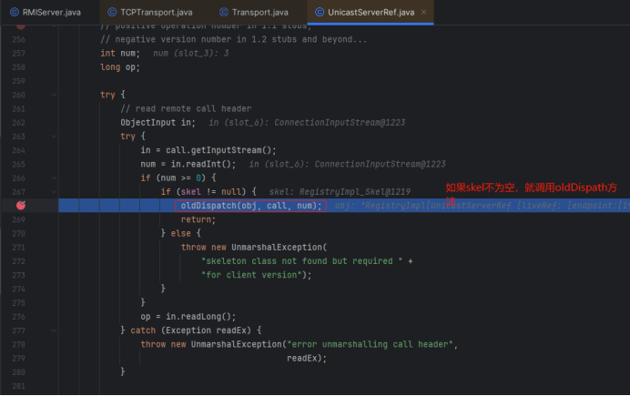 这里的skel只有注册中心才有,当判断是注册中心就会调用oldDispath方法,显然这里满足条件