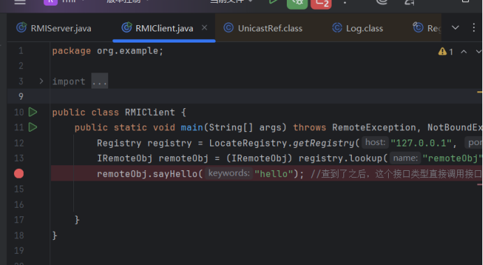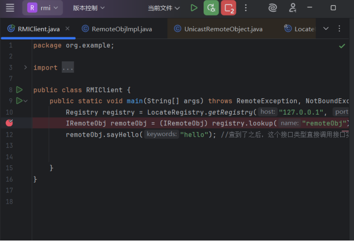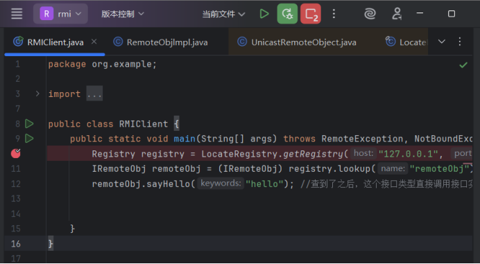 IRemoteObj remoteObj = (IRemoteObj) registry.lookup("remoteObj");//去查找注册中心的这个名字