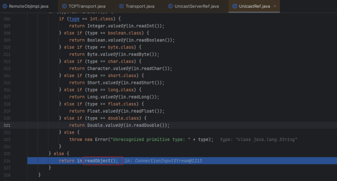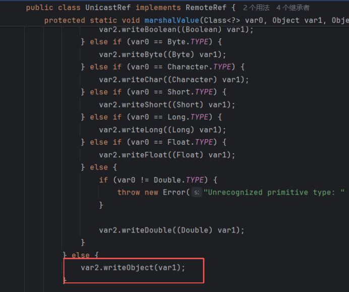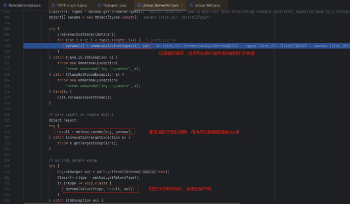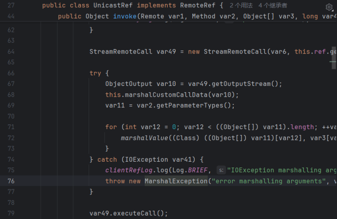 此方法主要是处理网络请求,这个方法中也使用了反序列化方法,也就是说调用invoke,都有可能执行反序列化。