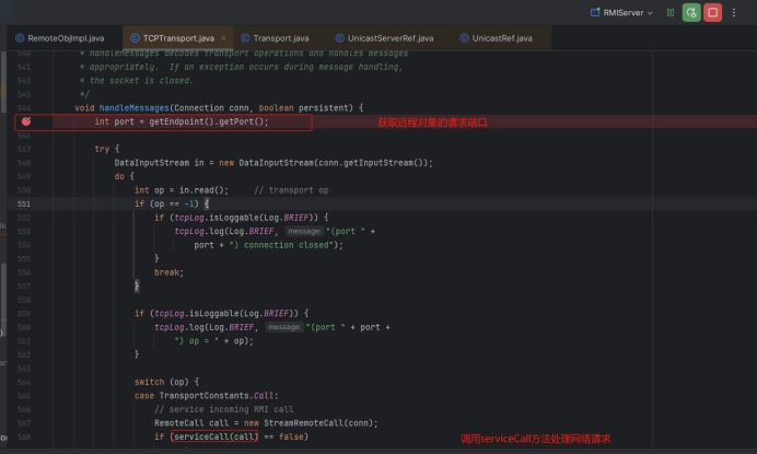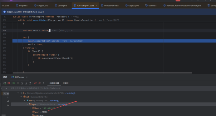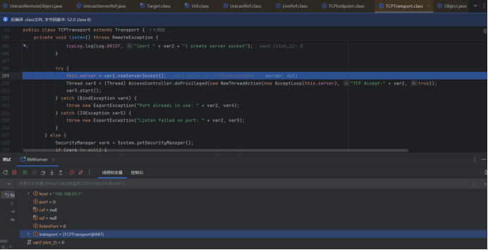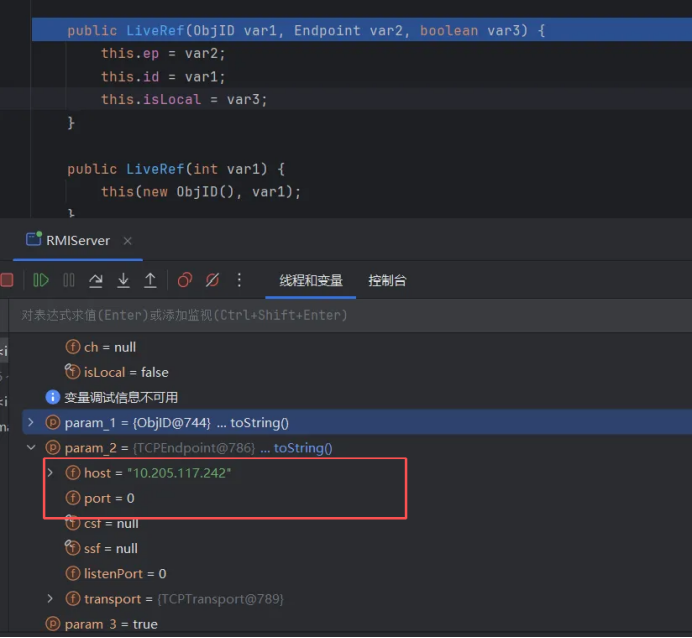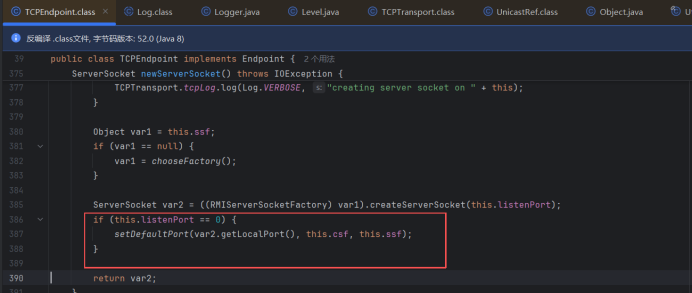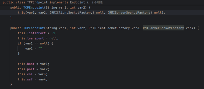 :它是RMI中TCP/IP传输协议的具体实现。它封装了IP地址和端口号。当传入的port为0时,TCPEndpoint会记录下这个“动态端口”的意图。它内部会处理获取主机 的IP地址(getLocalHost