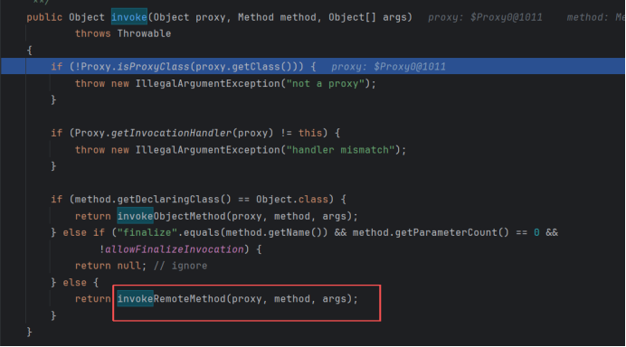 因为客户端获取的是远程对象代理stub,也就是说它调用任意方法都会走到invoke里