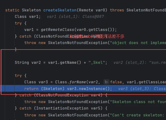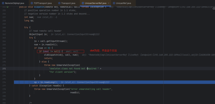 漏洞点在客户端与服务端都存在,因为Skel代理是服务端,Stub代理是客户端。所以这就是JRMP所谓的绕过。