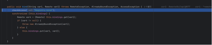 public void bind(String var1, Remote var2) throws RemoteException, AlreadyBoundException, AccessException {