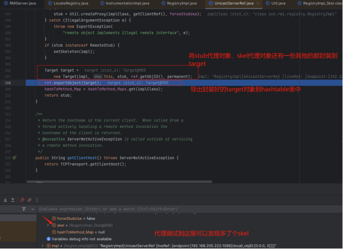 RMI 内部维护一个表格,将接收到的网络请求(包含对象 ID)与我们的 remoteObjlmpl 实例关联起来。
