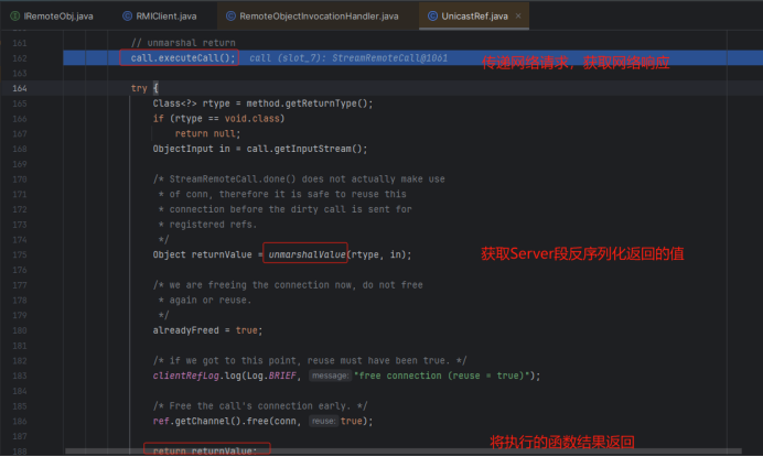 第二次连接:服务端发送给客户端的Call消息客户端反序列化对象,发现该对象是一个远程对象,地址在ip:port,于是再与这个地址建立TCP连接;在这个新的连接中,才执行真正的远程调用,也就是