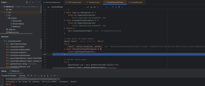 再看第二个关键点,当服务端进行反射调用后,可以看到方法执行成功并且返回了值