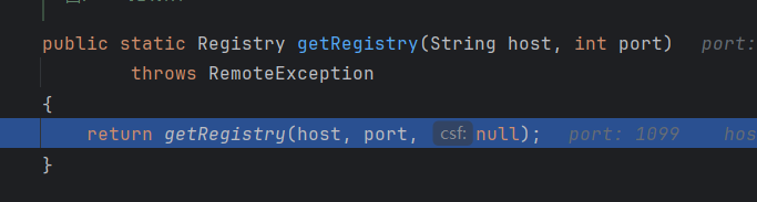 Registry registry = LocateRegistry.getRegistry("127.0.0.1", 1099); //远程获取注册中心的一个连接