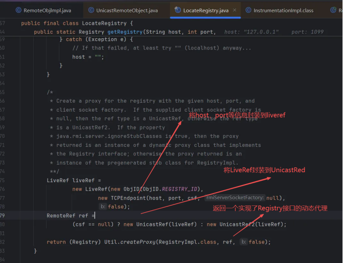 Registry registry = LocateRegistry.createRegistry(1099);//创建一个注册中心,它的默认端口为1099