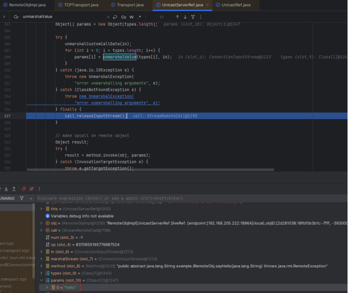 先看第一个 unmarshalValue 方法,最后反序列化客户端序列化的内容