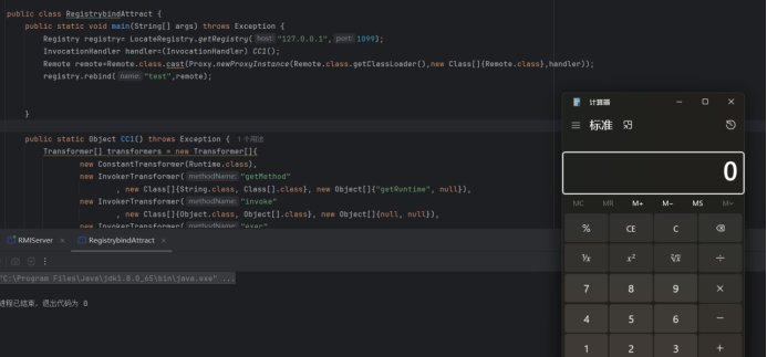 除了unbind和rebind都会返回数据给客户端,返回的数据是序列化形式,那么到了客户端就会进行反序列化,如果我们能控制注册中心的返回数据,那么就能实现对客户端的攻击,这里使用ysoserial的JRMPListener,