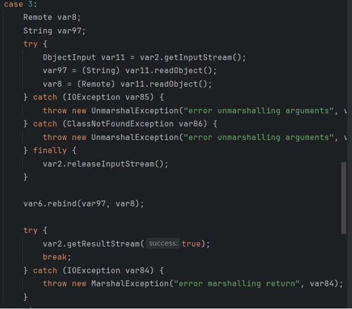 查看bind和rebind的源码,可以看到这里是有readObject的