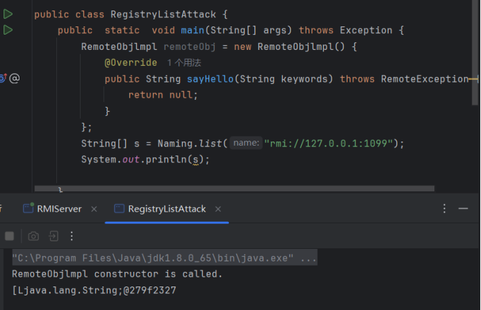 Registry registry= LocateRegistry.getRegistry("127.0.0.1",1099);