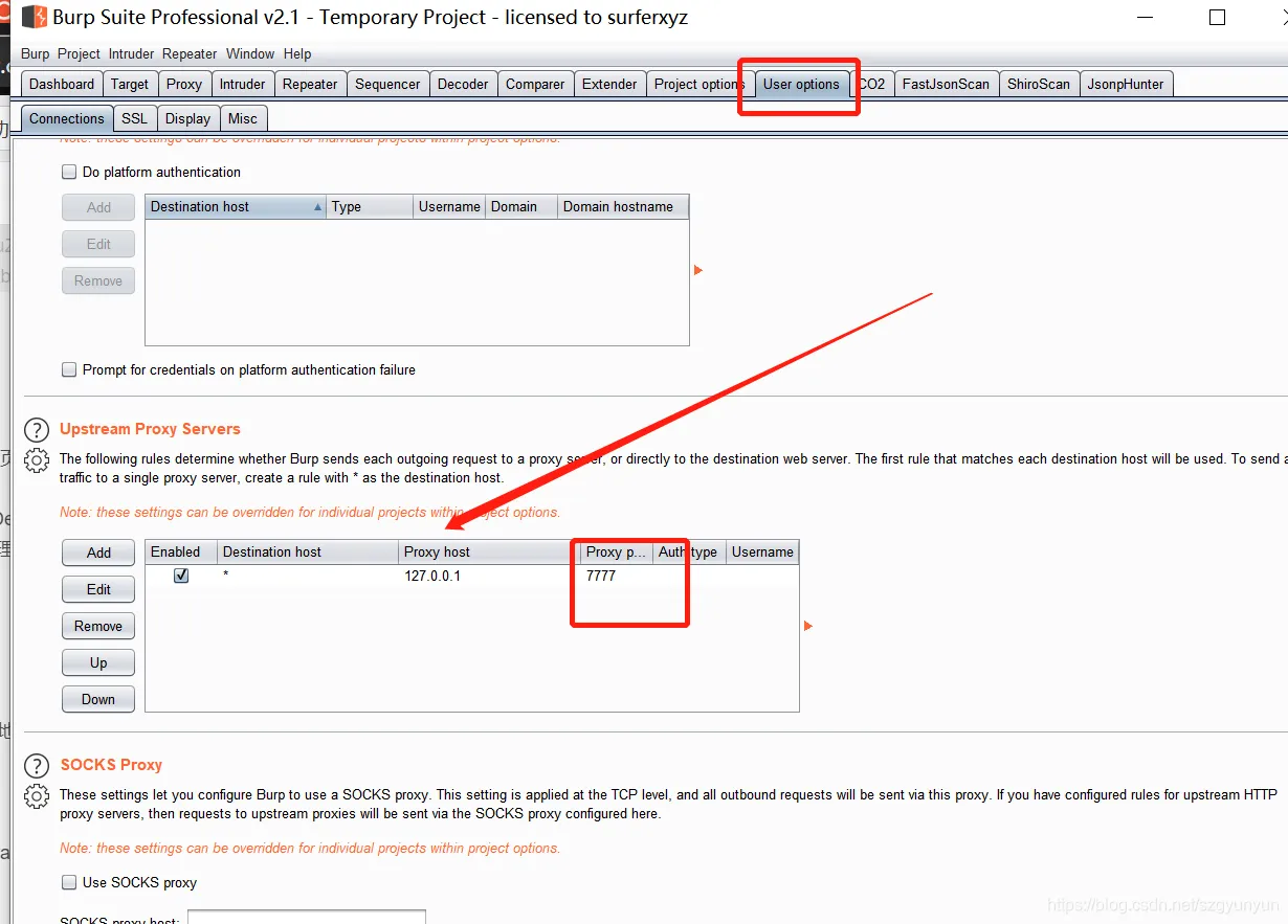 Burp Proxy → Options 添加 127.0.0.1:8080 (默认已存在)